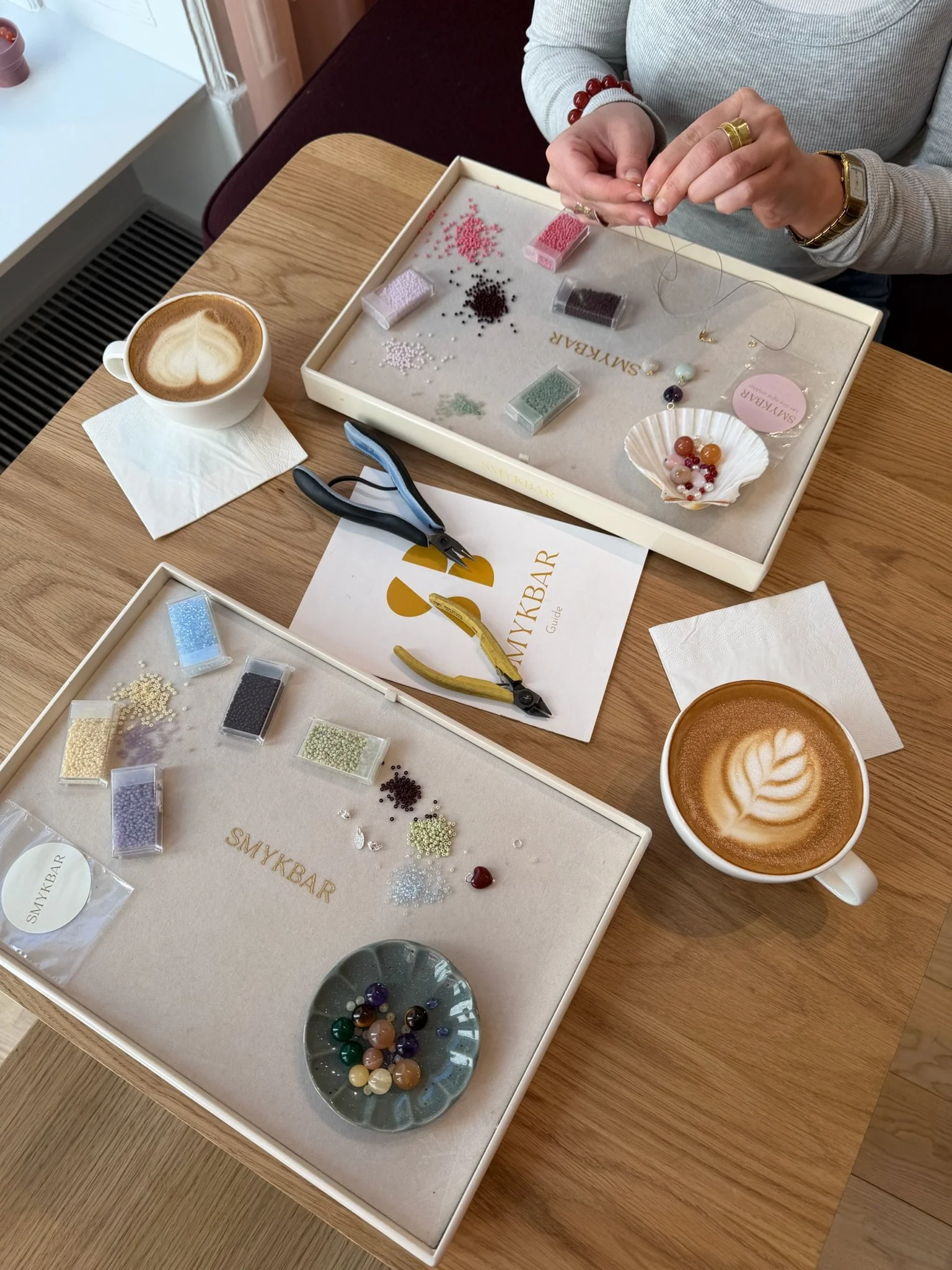 Bei SMYKBAR könnt ihr sowohl guten Kaffee genießen als auch zusammen kreativ werden. Hierbei nehmt ihr am Ende euer eigenes gestaltetes Armband mit nach Hause.