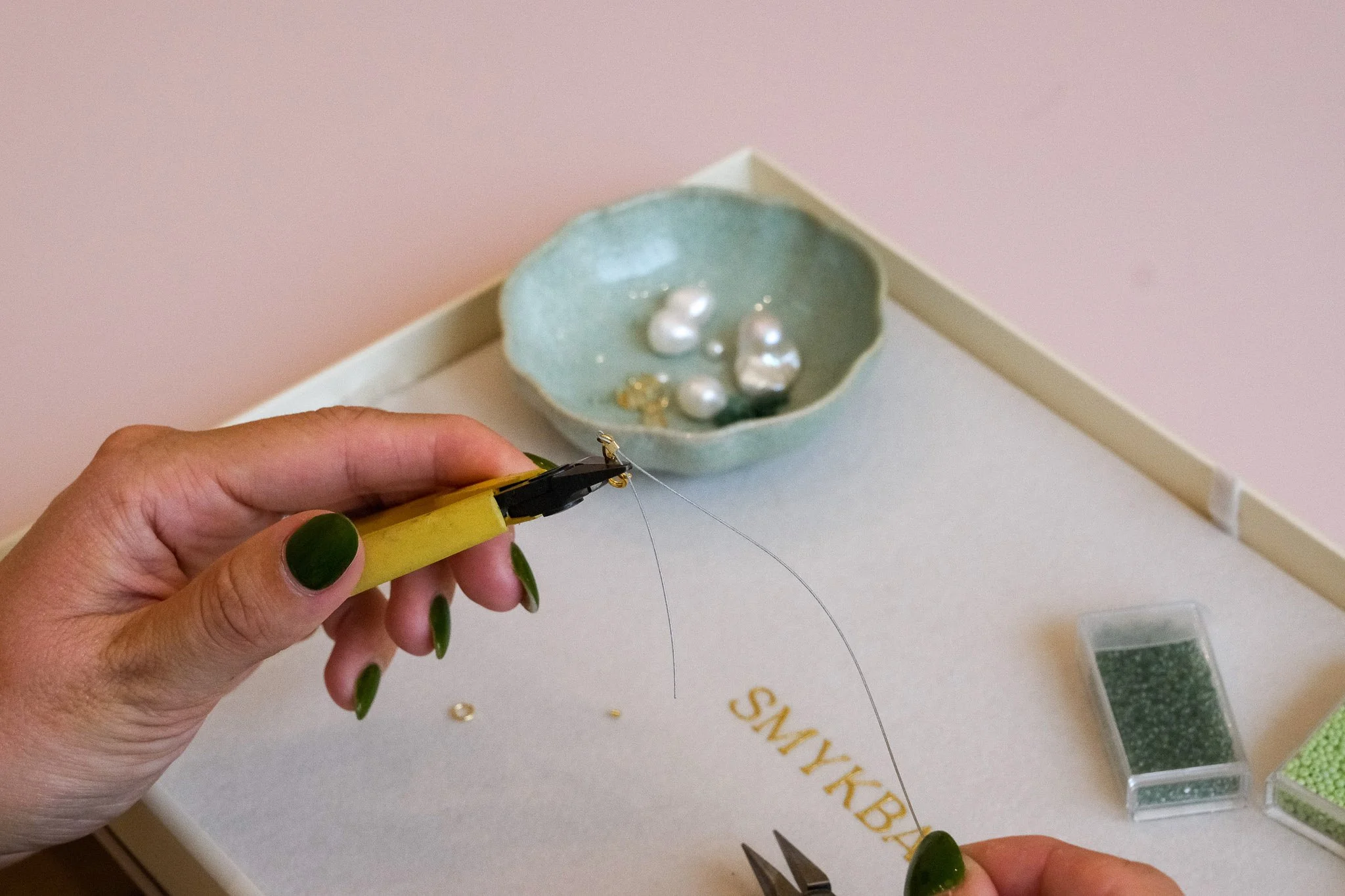 Zu Beginn, um den Verschluss zu befestigen, und am Ende, um das Schmuckstück zu schließen.