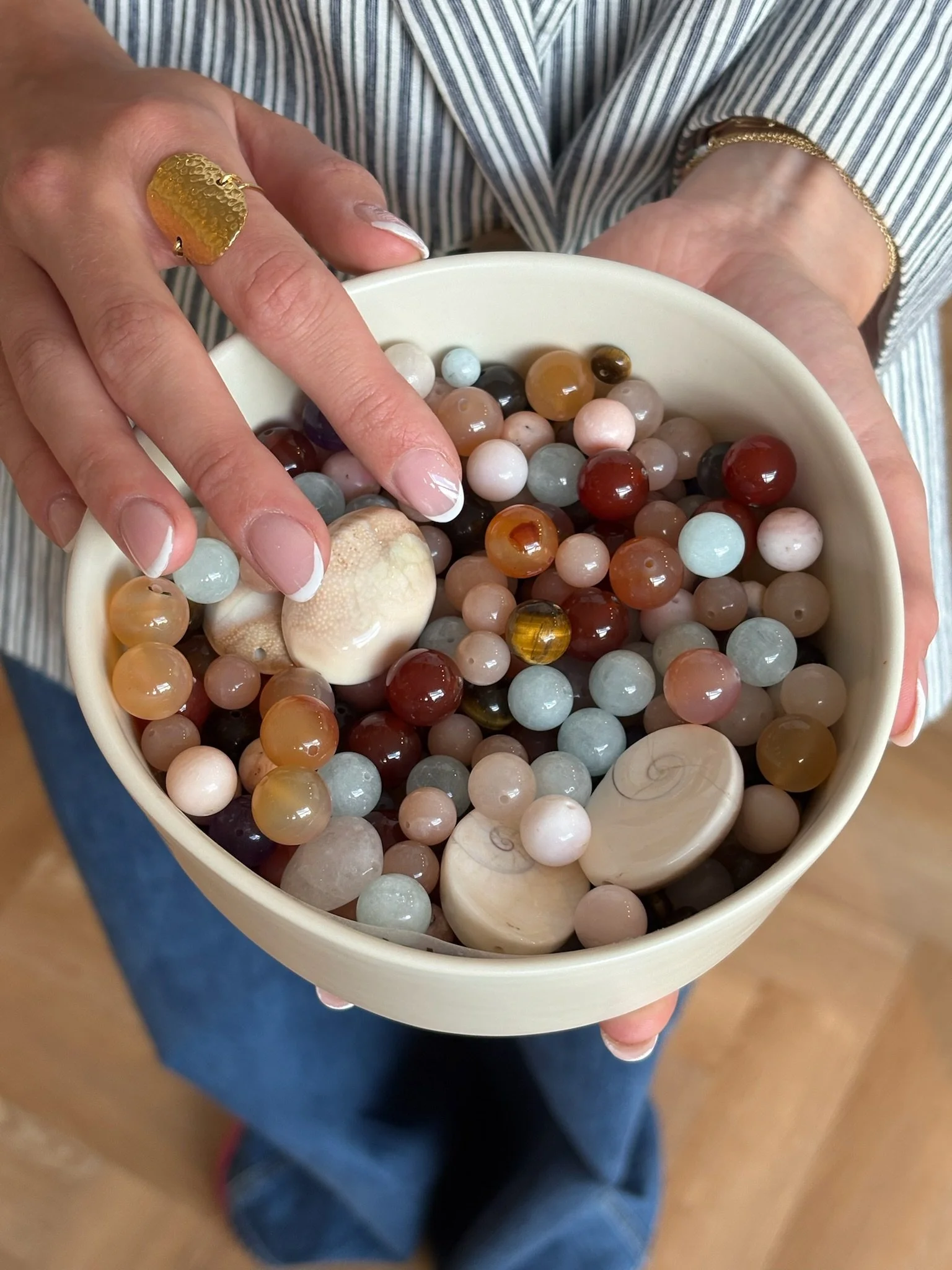 Wir sind immer auf der Suche nach wunderschönen Edelsteinen und Perlen, damit Sie mit den besten Materialien arbeiten können. Alle unsere Schmuckteile werden entweder von uns selbst hergestellt oder sorgfältig ausgewählt.